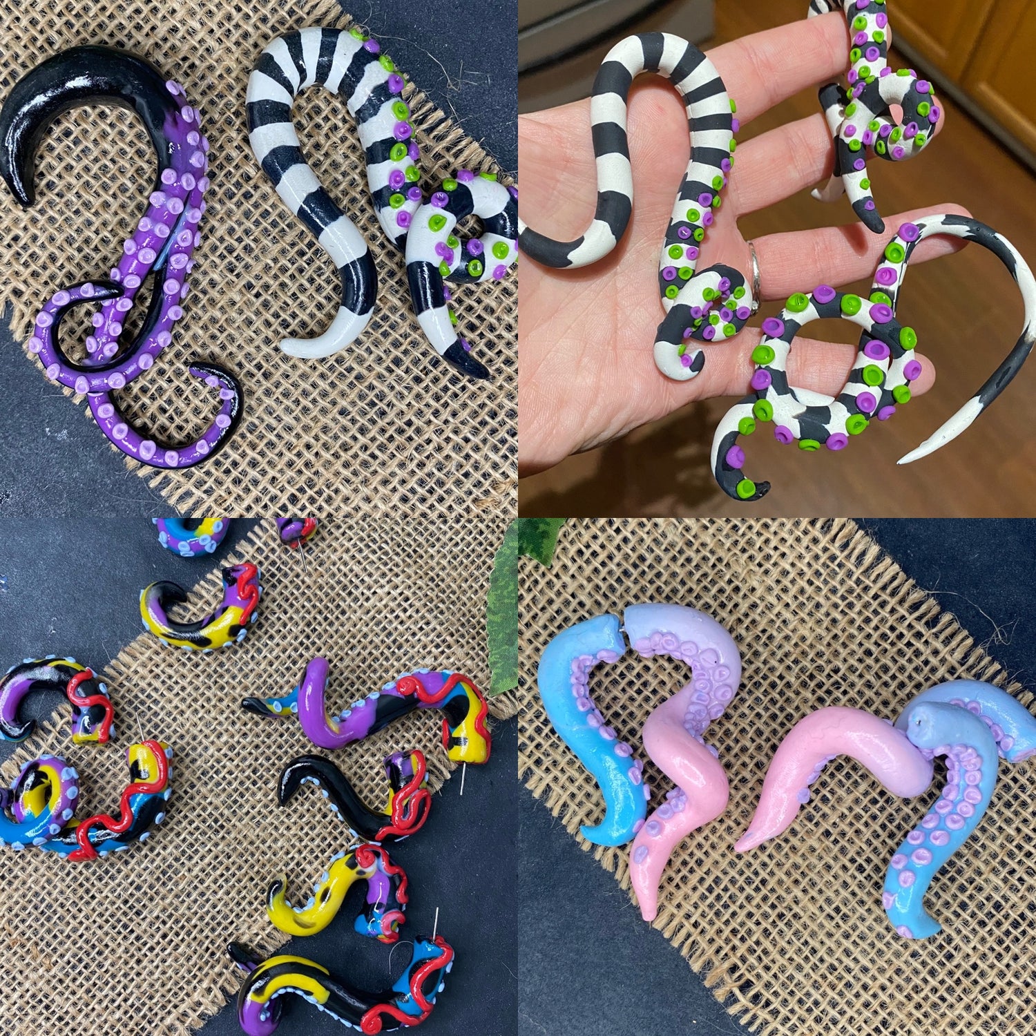 Made to order custom tentacle earrings. These are made as faux stretchers...
