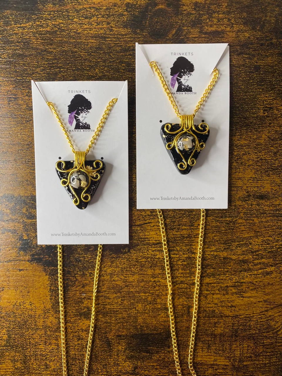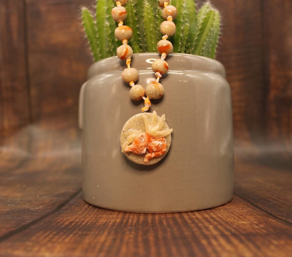 Personalize your pieces by sending in cremains of your loved one to be worked into the clay or encapsulated as an orb into your design. We also work with a long list of materials such as cloth, hair, fur, dirt, sand, dried flowers, herbs etc. If you have something that you would like to memorialize but don't see it on our lists please do not hesitate to reach out to see if we can work with whatever material you have in mind!