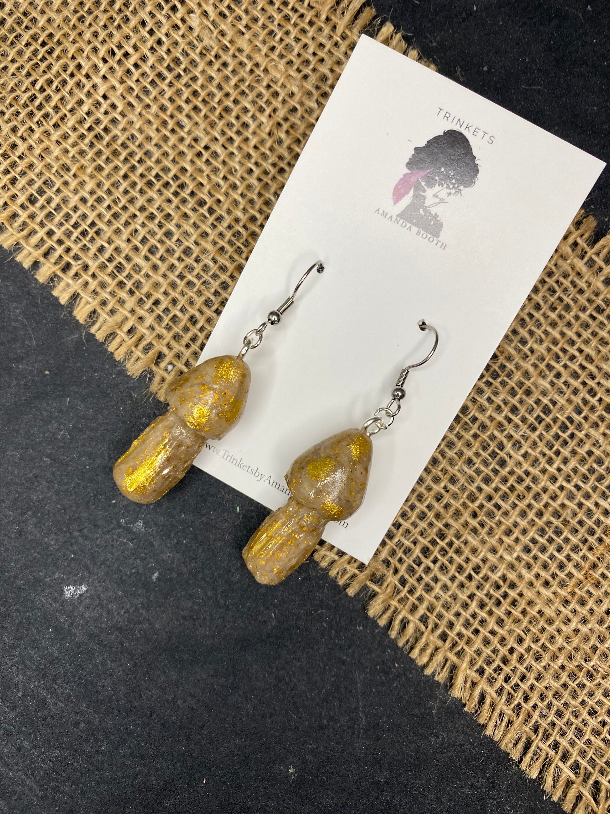 Hand sculpted mushroom earrings on hypoallergenic finishings