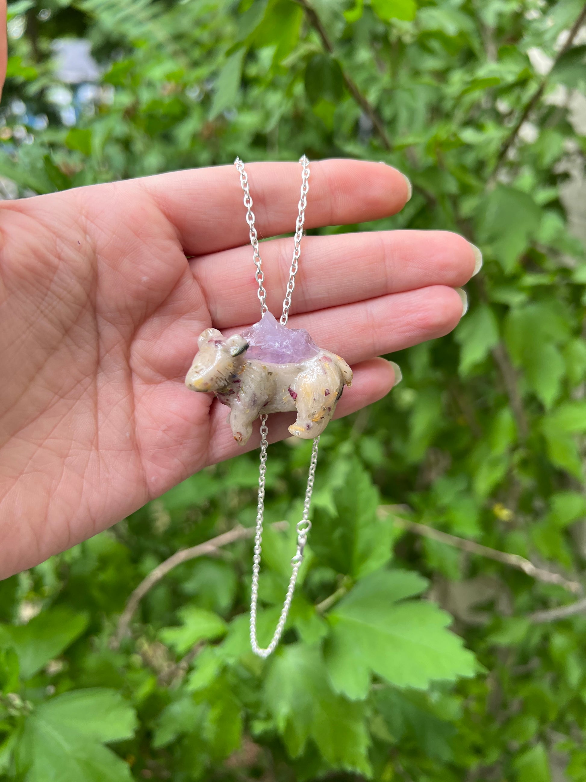 Herbs are incorporated into translucent clay that are associated with the intention chosen.