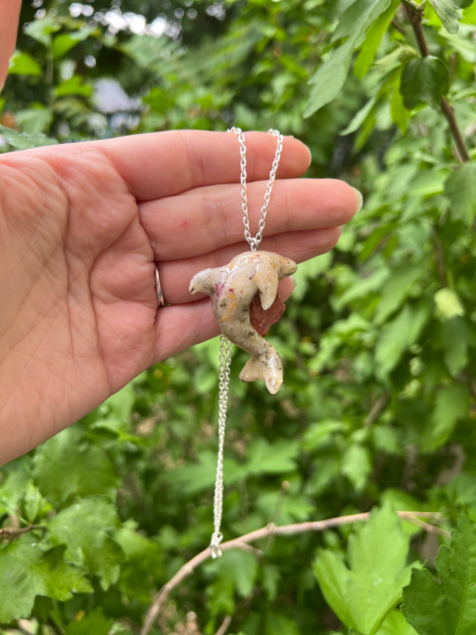 Herbs are incorporated into translucent clay that are associated with the intention chosen.