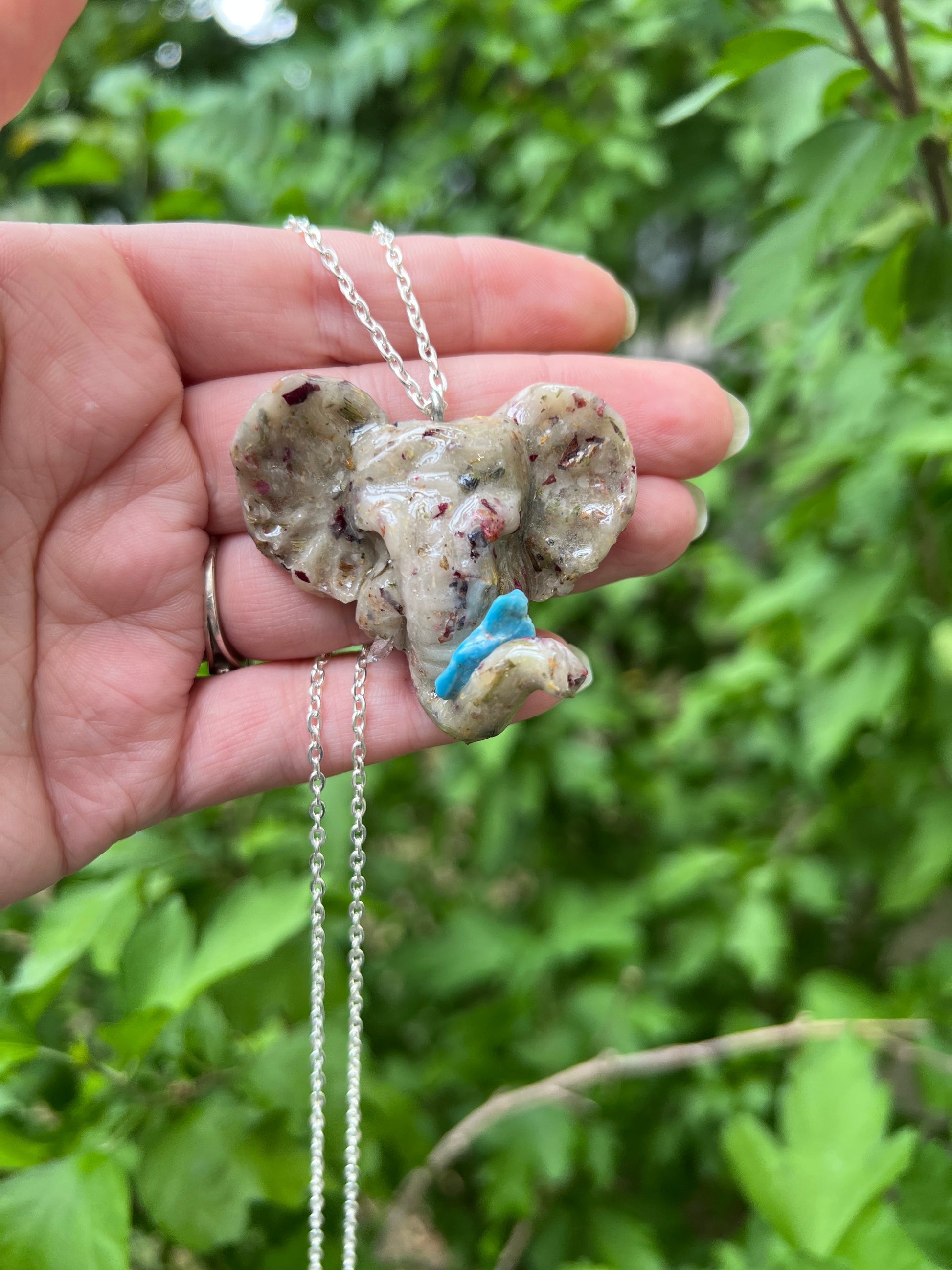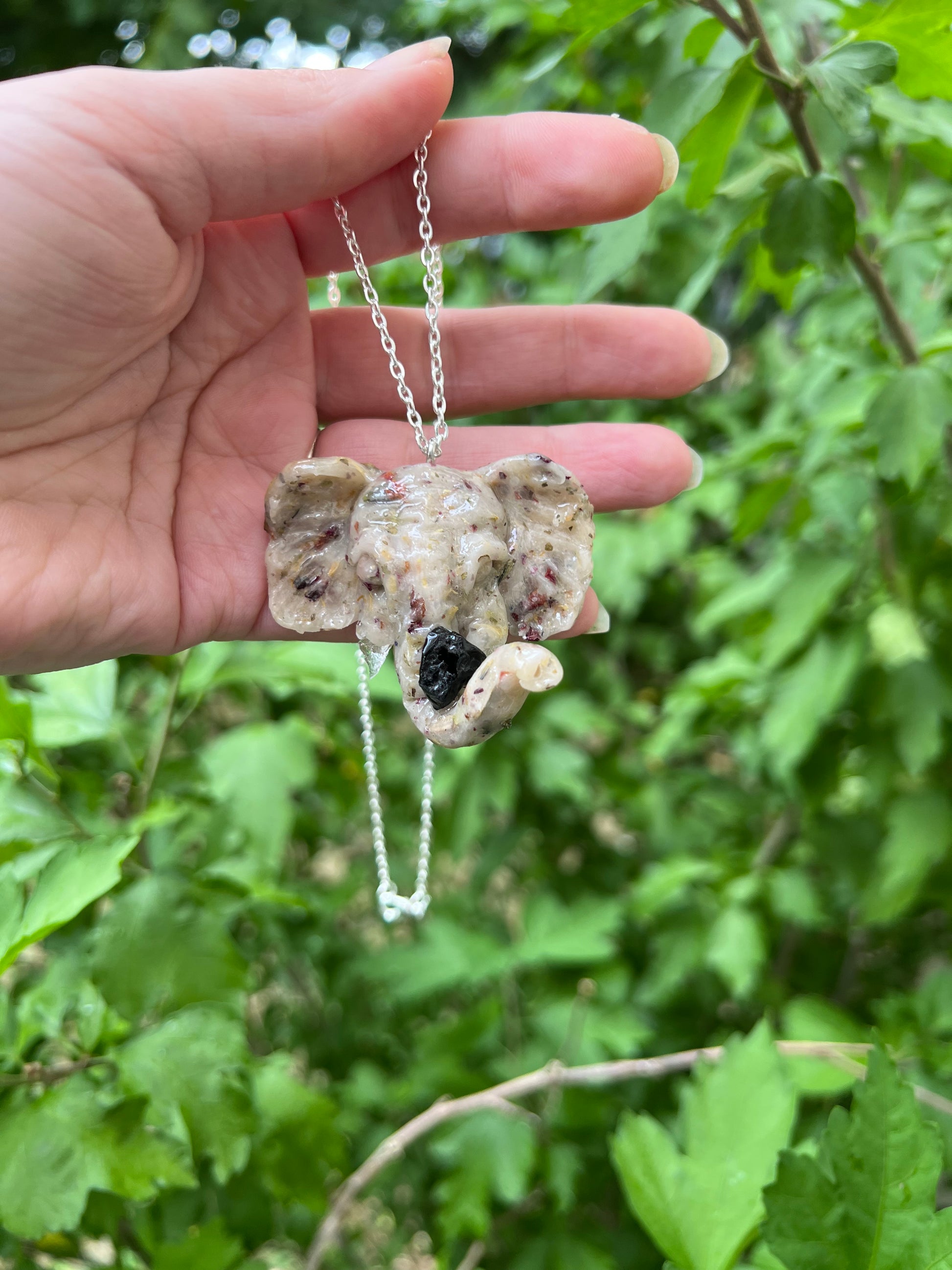 Herbs are incorporated into translucent clay that are associated with the intention chosen.