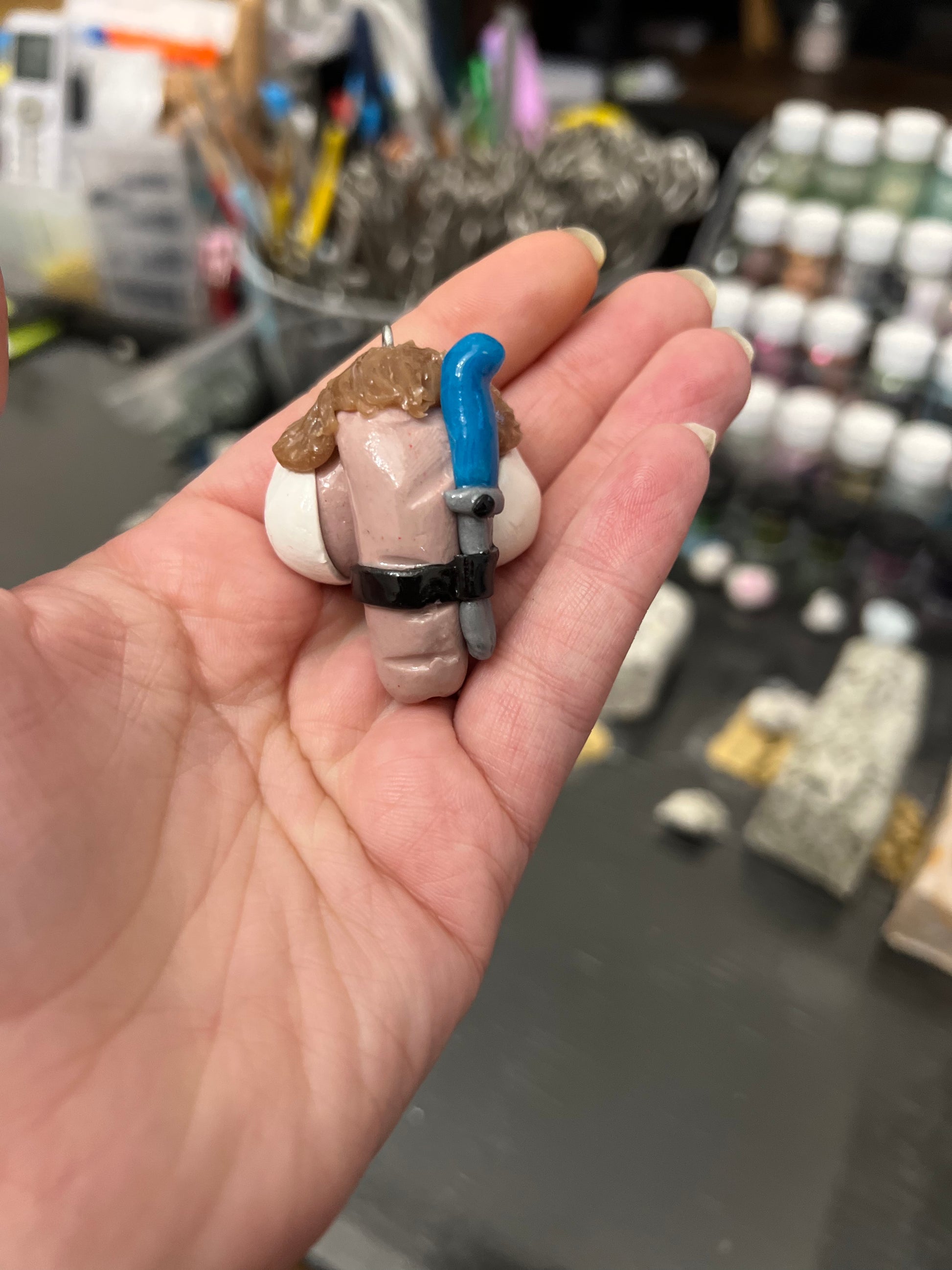 Hand sculpted, made from polymers clay.